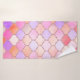 Moroccan tile pattern with watercolor background and purple glitter outline.