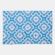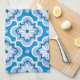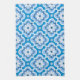 Mixed media digital rendition of a classic Moroccan tile pattern - Light sky blue blue, cobalt blue, and white on a cerulean blue background