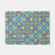 Moroccan tiles design gives an exotic flair to this doormat patterned in shades of teal, blue and terracotta