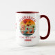 Stylish MARRAKECH Marrakesh personalised holiday vacation Mug with CUSTOMIZABLE TEXT. The design shows the popular vintage sunset design with Moroccan elements, such as a Moroccan fez, camels, vessels, etc. You can add your surname or group name and year at the bottom and you can PERSONALIZE your message in the middle. Buy matching shirts for your family or group members.