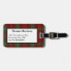 Red and green luggage tag done in the classic Scottish Morrison clan tartan plaid pattern. A white text area, on the front, has black text ready to personalise with your information. The perfect way to spot your luggage, and makes a great gift idea.