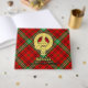 Clan Morrison crest badge surrounded by a strap and buckle over red tartan background. Custom front, back and spine text.