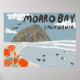 Morro Bay Central California Illustration Beach Poster