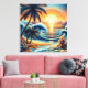 Mosaic Ai Art | Ocean Sunset and Palm Trees Canvas Print