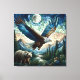Mosaic Bear and Eagle in the Mountains Ai Art Canvas Print