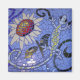 Mosaic Gecko and Sunflower on Blue Magnet