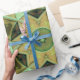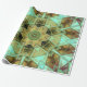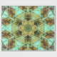 Mosaic Kaleidoscope Flower Green and Brown Wrapping Paper