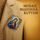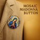 "This exquisite design features a portrait of the Virgin Mary rendered in a rich, detailed mosaic style. She is depicted with a serene expression, eyes closed in prayer, and hands clasped. She is cloaked in a deep blue mantle adorned with gold trim and stars, set against an arched background of a radiant sunburst and starry sky. The intricate mosaic texture and golden accents give the image a sense of sacred grandeur and timeless artistry. This design is highly suitable for products with a religious, historical, or classic art theme. Imagine it on religious icons, devotional items, framed art prints, or elegant stationery."
