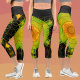 Mosaic Mandala Flower Green Orange and Black Capri Leggings