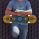 Mosaic Mandala Flower Yellow and Blue Skateboard