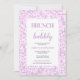 Classicly elegant bridal shower brunch and bubbly invitation featuring purple mosaic pattern and watercolor back page.