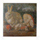 An antique, vintage mosaic of a rabbit with mushrooms. A beautiful woodland animal and plant image.