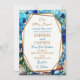 About to say '"I do"? Well here are some pretty coastal wedding invitations with an illustration of mosaic broken tiles, stained glass beachy design in golds and blues. Two sea horses looking at each other in a sea of vibrate colours surrounded by coral and crisp blue water.