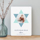 Elegant and modern Hanukkah photo card features a favourite photo set inside a Star of David accented with bright shades of blue for a unique mosaic effect, on a white background. "Happy Hanukkah" appears beneath in modern, clean white lettering. Personalise with your names along the bottom.