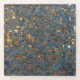 Mosaic - photo image of stones and glass arranged in a random pattern in shades of blue ranging from cobalt to turquoise and gold tiles