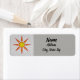 This return address label features an orange and yellow sun with a mosaic-tiled design. The text can quickly be personalised and the solid background colour may be customised if you desire.