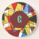 Discover our stunning sandstone coaster featuring an abstract geometric mosaic of sharply contrasting triangles in vibrant red, yellow, green, and blue. Thick black outlines create a stained glass-inspired design with a modern twist, while intersecting lines and dynamic angles add a lively, chaotic charm. Perfect for adding a bold, artistic touch to your space.