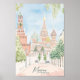 Moscow Russia Gouache Paint Illustration Travel Poster