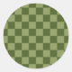 Moss Green Chequerboard Classic Round Sticker