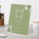 Moss Green Elegant Floral Greenery Guest Book Pedestal Sign
