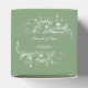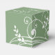 Personalise a unique wedding favour box for guests with this Moss Green Flourish Wedding Favour Box. Favour box design features an elegant leafy flourish with matching coloured background. Personalise with the groom and bride's names along with the wedding date. Additional wedding stationery available with this design as well.