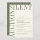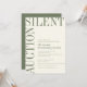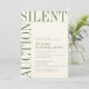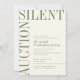 Classic typography feels modern and fresh in a unique and striking layout that invites guests to a silent charity auction with a feeling of warmth in the mossy green text and the warm white background.