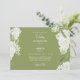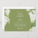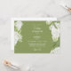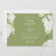 White Hydrangea Wedding Invitation. White typography. Modern Design and font. Elegant. Moss Green. Horizontal.