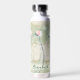 Moss Green & White Pastel Flowers Personalised Water Bottle