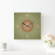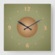 A classy plain kitchen clock in light moss green with a tan centre .This clock design also features yellow numerals.