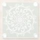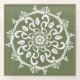 This white mandala sits on a dark moss or olive green background. The colours are harmonious and balanced. Part of the Payon Mandala Collection.