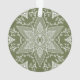 This white mandala sits on a dark moss or olive green background. The colours are harmonious and balanced. Part of the Howlsplann Mandala Collection.