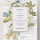 Modern watercolor with line elements and a freehand abstract look. Pretty colours of nature: pond blue, mossy green, pale gold. Elegant all-in-one is filled with pretty colour and calligraphy accents. All the information needed is at hand in one easy invitation format.
