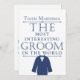 It's his last hurrah before settling down! Why not kick the festivities off with a funny and cool invite which lets all of the guys know that the guest of honour is...the most interesting groom in the world! This Most Interesting Groom Bachelor Party Invite in dark blue features a bold text design and a sleek tuxedo. Easy to customise, simply add the details of the crazy wild bash you have planned in the fields provided. Click on the "Customise It" button to find additional personalisation options.