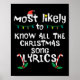 Most Likely Know Christmas Song Lyrics Xmas Family Poster