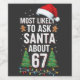 Most Likely To Ask Santa About 67 Six Seven Xmas Wine Label