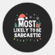 Most Likely To Be Sarcastic Christmas Funny Xmas L Classic Round Sticker