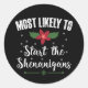 Most Likely To Start The Shenanigans Christmas Classic Round Sticker