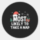 Most Likely To Take A Nap Christmas Funny Xmas Lon Classic Round Sticker