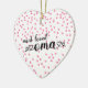 Most loved Oma heart shaped christmas ornament with a field of tine pink hearts background. Visit our shop to view this ornament in a large assortment of grandmother names.