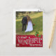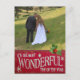 An old fashioned red and white sign with holly and snowflake decorations declares it to be The Most Wonderful Time of the Year on this Christmas photo card. Your own photograph, be it wedding, family, or portrait, takes centre stage at the top. A bright red and green holly sprig adds more decoration between the sign and the photo. The back of the card has plenty of room for your custom text and personal message.