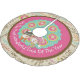 Most Wonderful Time of the Year holiday tree skirt features a beautiful design with a background of white typography, a ring of pink edged with brown, and a ring of aqua with white polka dots! This pretty holiday tree skirt also features circles with stars of cream on pink, a snowman couple, and text that reads It's The Most Wonderful Time of the Year! This beautiful Christmas tree skirt will be treasured for years to come!