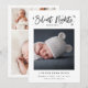 Whimsical multi photo birth announcement card featuring a typography text at the top that says "silent nights, mostly..." You can add your newborn picture under it. You can also add 3 mores photos on the back of the card and birth stats on the bottom. Great for both boys and girls.