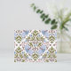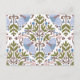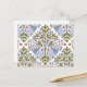 This postcard features a hand drawn design of a delicate moth and floral designs in a beautiful corn blue and olive green shades.