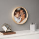 A custom photo clock with your photo of Mother and Baby makes a wonderful Mother's Day, birthday, Christmas, or other special occasion gift. It's a great addition to baby's nursery and adds a custom look to your decor. Load your selected photo in place of the sample photo shown in the design template. The sample photo used in this design is a square shaped photo - this shape works best to centre the design properly in the round shape of the clock. The clock numbers are silver grey with a drop shadow in black to ensure visibility with whatever photo you use.