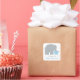 Favour sticker features a mother elephant and her newborn baby elephant calf and colour scheme of white, light blue, and grey - perfect for a baby boy! Personalise with custom text.