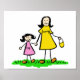 Mother and daughter hold hands. The woman's dress reads "mummy" and the little girl's shirt reads "me". The family has black hair and light skin. The image comes in multiple ethnic family versions including a no colour drawing version too. Add your own words to the poster art print like "Mummy's Girl" or family names. Change the background art colour too! Customise this family poster art print with your personalised greeting message to make special custom family character posters for Mother's Day, new mommies, family reunions, or other special family holidays.