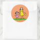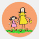 Mother and daughter hold hands. The mum's dress reads "mummy" and the little girl's dress reads "me". Parent and child are Asian with light skin. This parent and child family picture also comes in multiple ethnic family options including a simple line drawing. Personalise the family sticker decals with family names or a personal message for a special mother or mummy and daughter decal gift! You can make custom family stickers for a special Mother's Day gift, new Mummy and/or new baby, Family Reunion or other customised family art gifts!