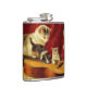 Flask featuring Henriëtte Ronner-Knip’s oil painting Making Music (1900). A mother cat looks on as her two kittens play with a guitar while one other kitten claws up a red curtain, and another kitten hides behind books. A wonderful gift for cat lovers and Romanticism enthusiasts.