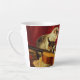 Latte Mug featuring Henriëtte Ronner-Knip’s oil painting Making Music (1900). A mother cat looks on as her two kittens play with a guitar while one other kitten claws up a red curtain, and another kitten hides behind books. A wonderful gift for cat lovers and Romanticism enthusiasts.