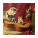 Ceramic Tile featuring Henriëtte Ronner-Knip’s oil painting Making Music (1900). A mother cat looks on as her two kittens play with a guitar while one other kitten claws up a red curtain, and another kitten hides behind books. A wonderful gift for cat lovers and Romanticism enthusiasts.